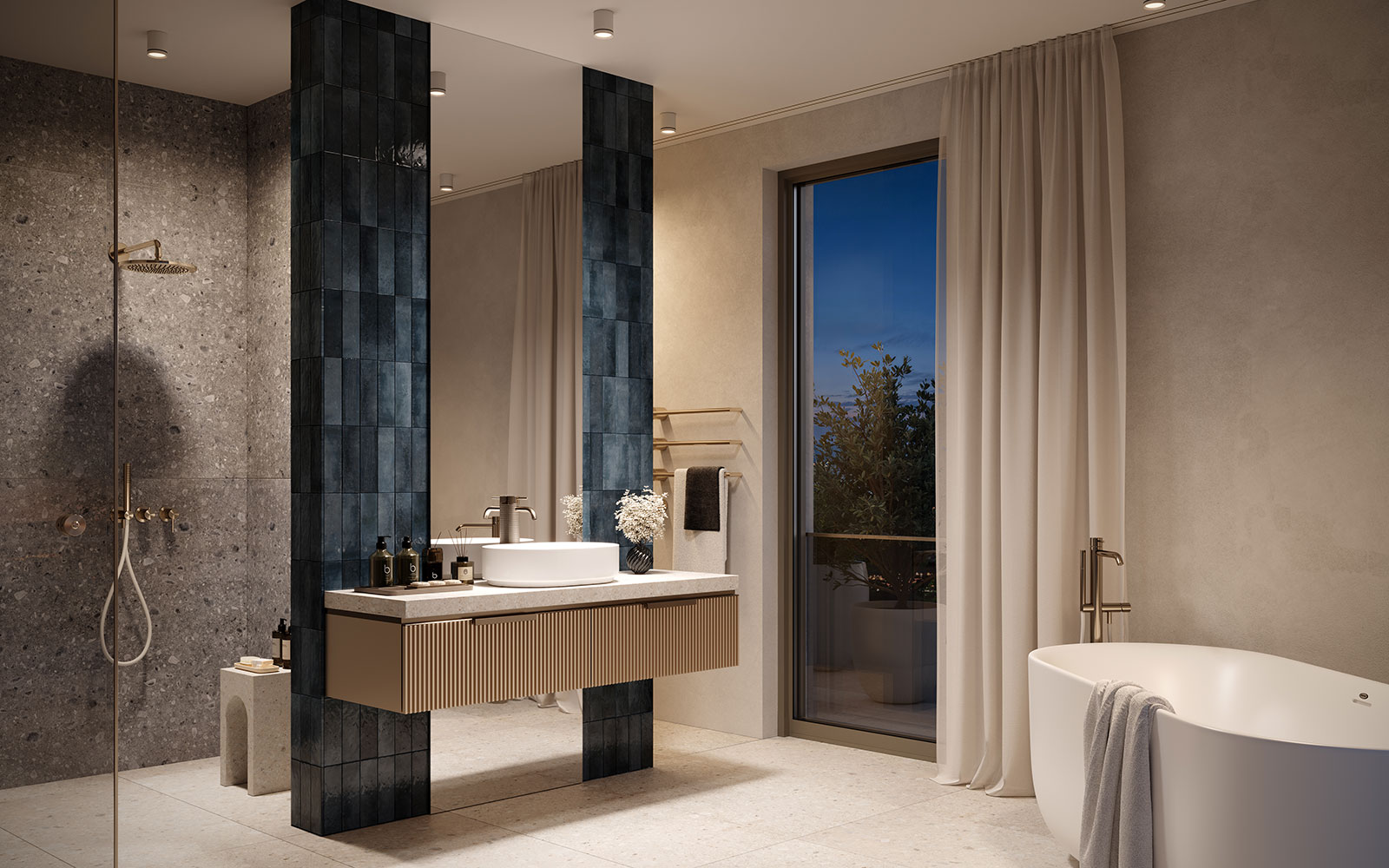Die Einheiten stehen für urbanes Wohnen mit Bodenhaftung – für Menschen, die Qualität, Ruhe und Raum lieben. Sie ist ein Ort, an dem Architektur Rücksicht nimmt, Gestaltung zum Erlebnis wird und Komfort selbstverständlich ist. Ein Zuhause, das Freiheit nicht in der Höhe, sondern in der Offenheit seiner Räume findet.